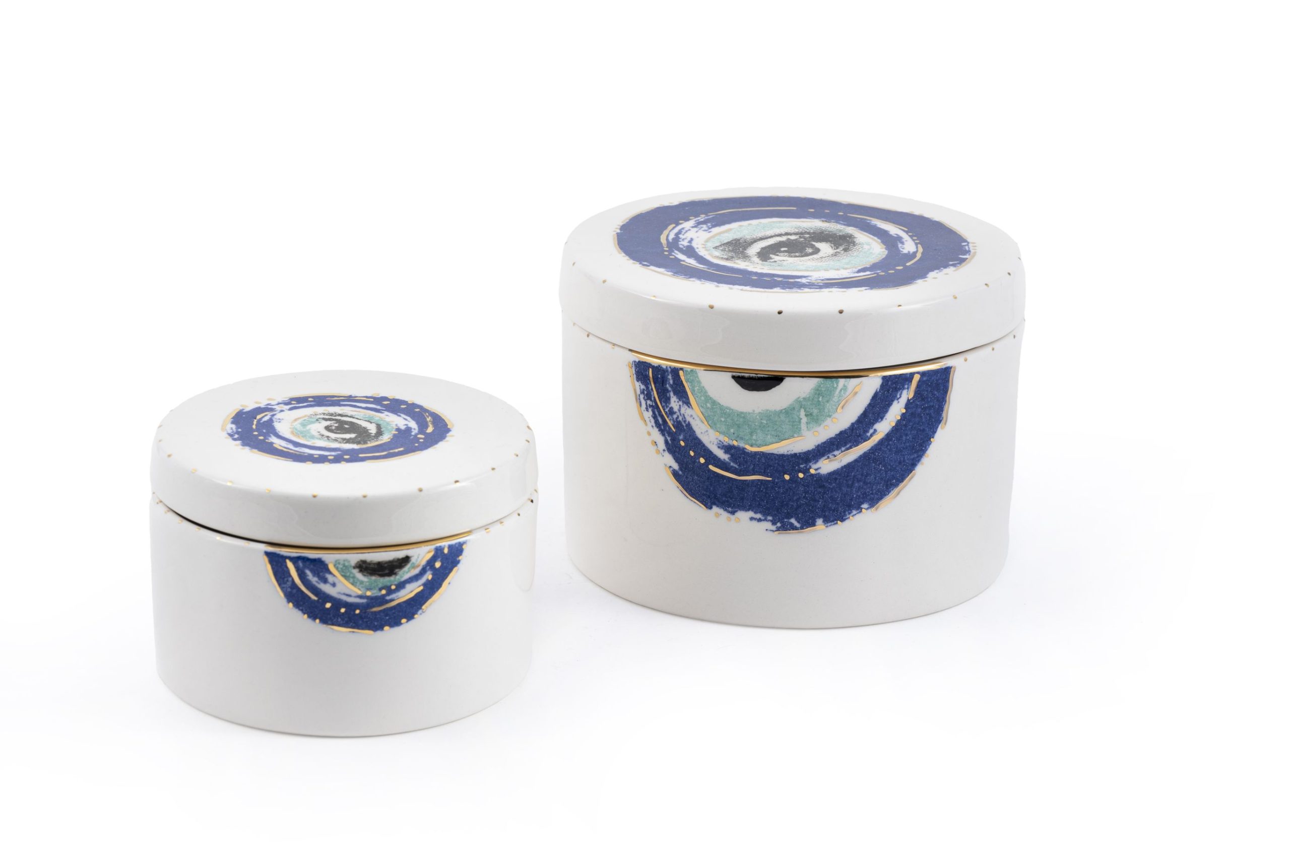 Color: Glossy white with detailed evil eye motif