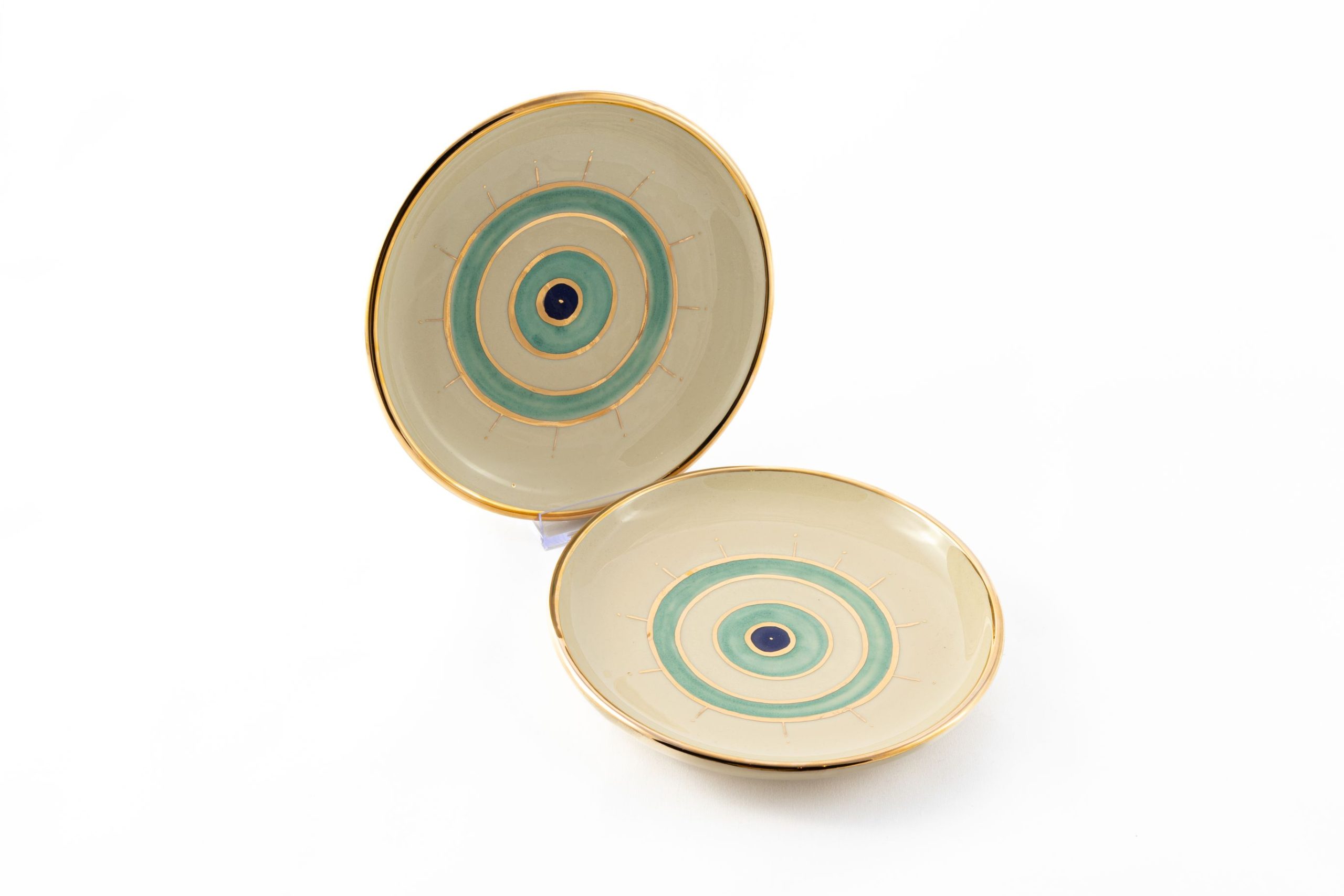 This exquisite gold eye plate is a handmade ceramic masterpiece, crafted