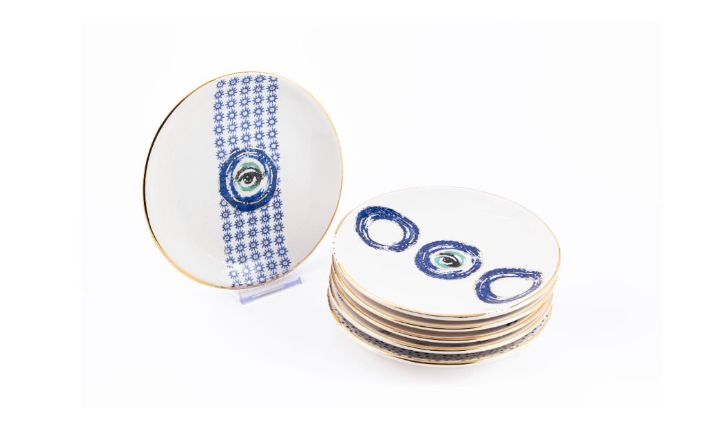 Set of 6 Ceramic Evil Eye Plate